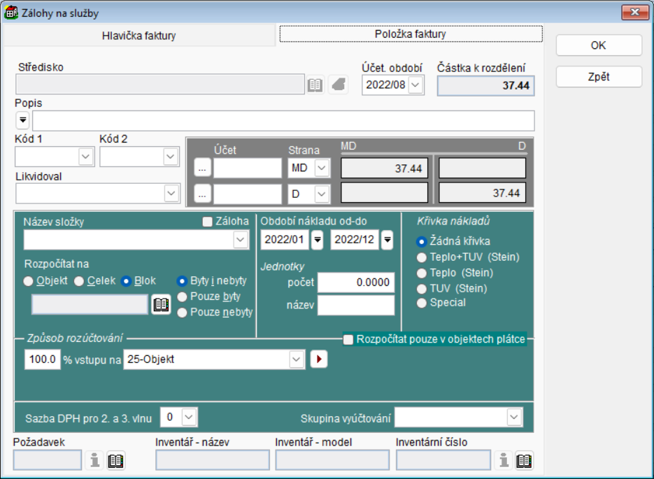 - Zálohy na služby