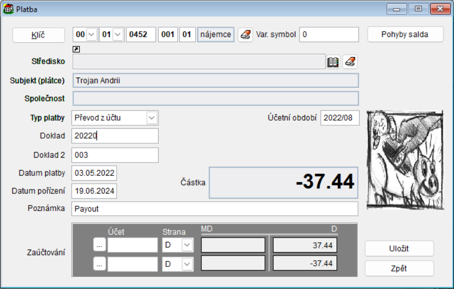 - Tlačítko Saldo - párování záznamy na saldo subjektu.