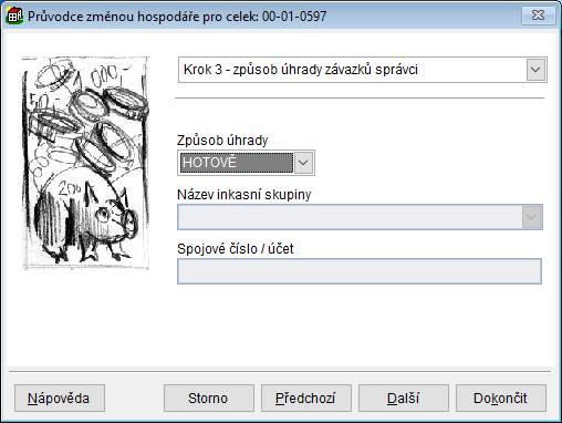 - Obrázek: Průvodce změnou hospodáře pro celek (Krok 1 - datum změny hospodáře)