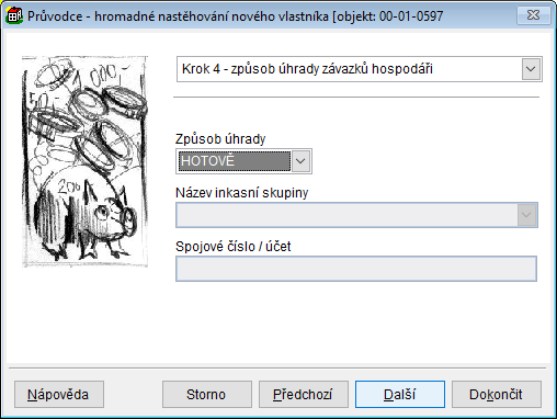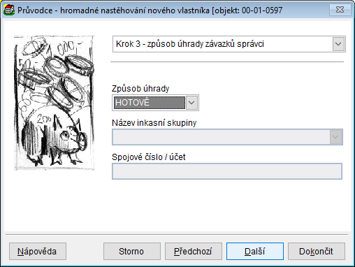 Spouští Průvodce - hromadné nastěhování nového vlastníka. Lze použít při novém pořízení celého celku a objektů, nebo při změně vlastnických vztahů.