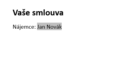 Proměnné pro úpravu Dodatku k nájemní smouvě