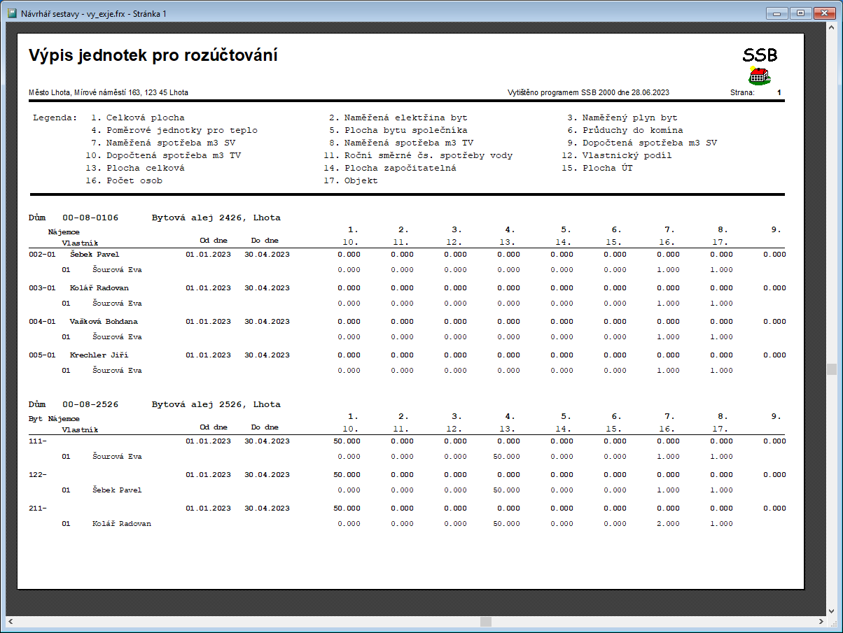 Úloha umožňuje vytisknout či uložit (tlačítko Export) do souboru všechny zaznamenané jednotky v členění na jednotlivé subjekty.