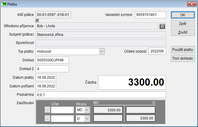 - Dat. platby - datum, kdy platba byla obdržena. Je rozhodné pro penalizaci.