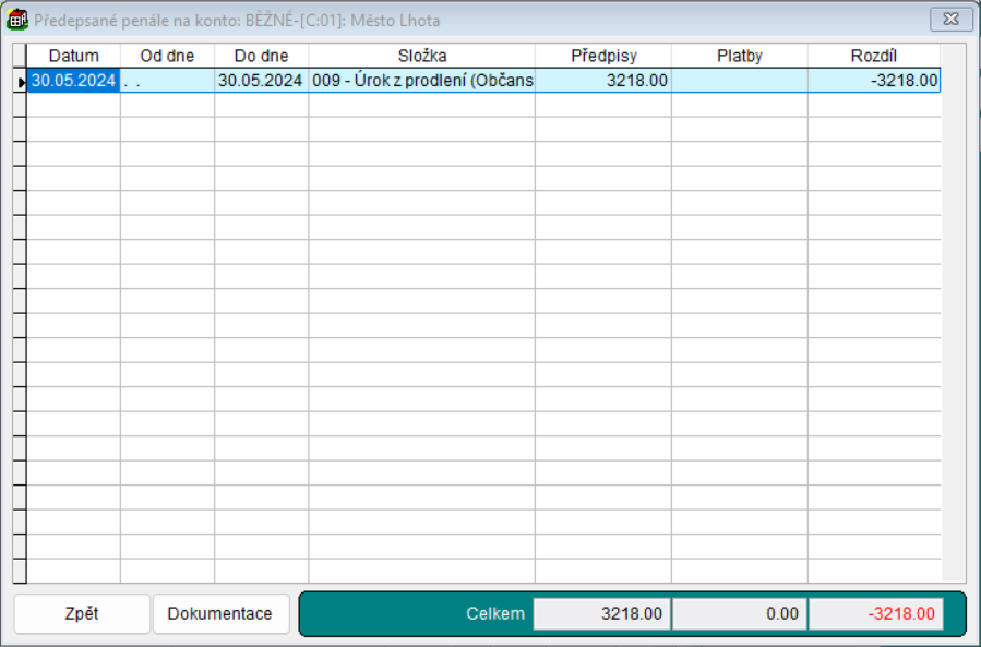 - Tlačítko Kontrolní přepočet penále - spouští Formulář Kontrolní přepočet penále
