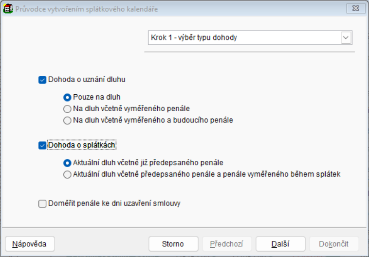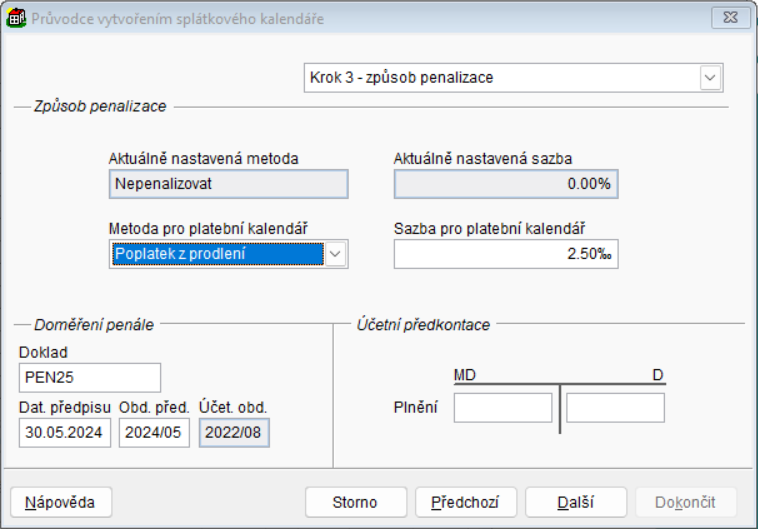 - Obrázek: Průvodce vytvořením splátkového kalendáře (Krok 3 - způsob penalizace)