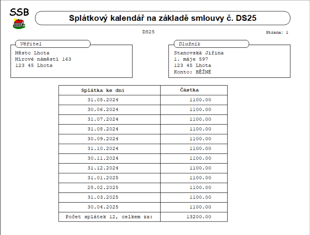 Úloha slouží k vytvoření splátkového kalendáře a jednotlivé formuláře požadují od uživatele všechny potřebné údaje.