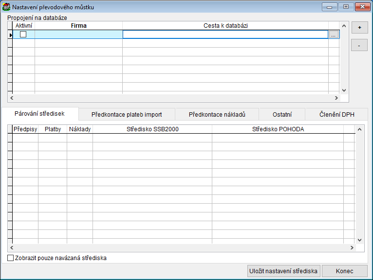 Obrázek: Nastavení převodového můstku - Párování středisek