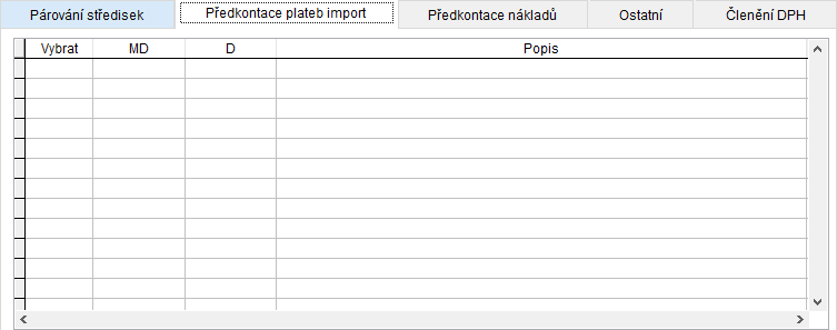 Obrázek: Nastavení převodového můstku - Předkontace plateb import