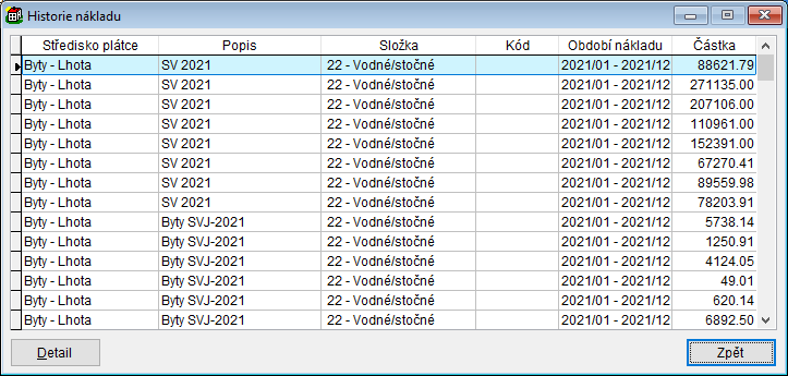 - Tlačítko Detail - spouští příslušný formulář dle typu nákladové položky. Je to Formulář Položka faktury - rozúčtovat proti zálohám na služby,