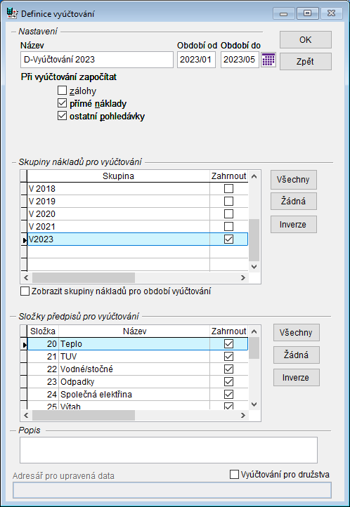 Obrázek: Definice vyúčtování