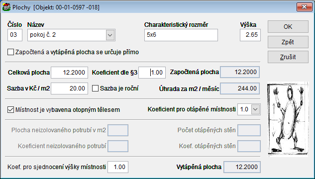 - Koeficient dle § 3 - koeficient pro přepočtení celkové plochy na plochu započtenou (pro účel výpočtu nájmu dle staré legislativy)