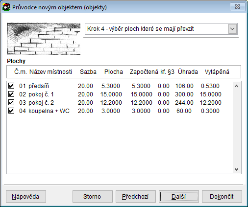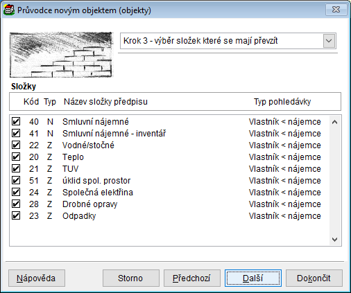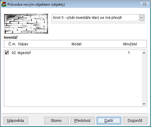 - Obrázek: Průvodce novým objektem (Krok 1 - výběr celku)