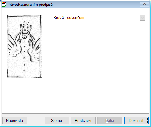 Spouští Průvodce zrušením předpisů. Zpracovává všechny předpisy (vytvořené programem i ručně).