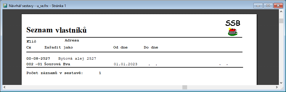 Úloha tiskne seznam vlastníků spolu s daty nastěhování a odstěhování.