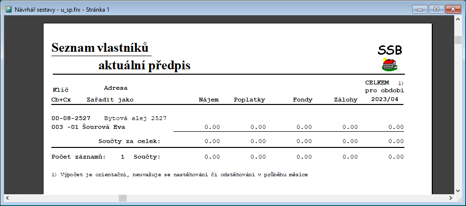 Voláno z menu: Sestavy ⇒ Vlastníci ⇒ Seznam včetně předpisu