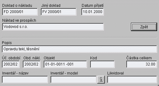 - Sestavy nákladů lze řadit dle data přijetí nebo dle názvu dokladu.