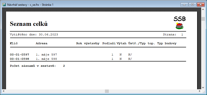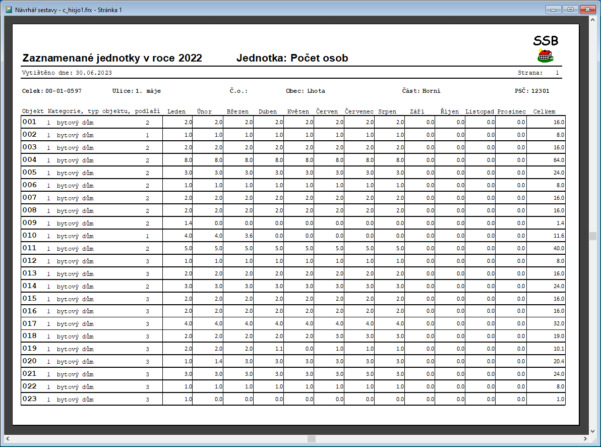 - Souhrnná sestava nákladů na neobsazené objekty lze vytisknout pro vybrané celky.