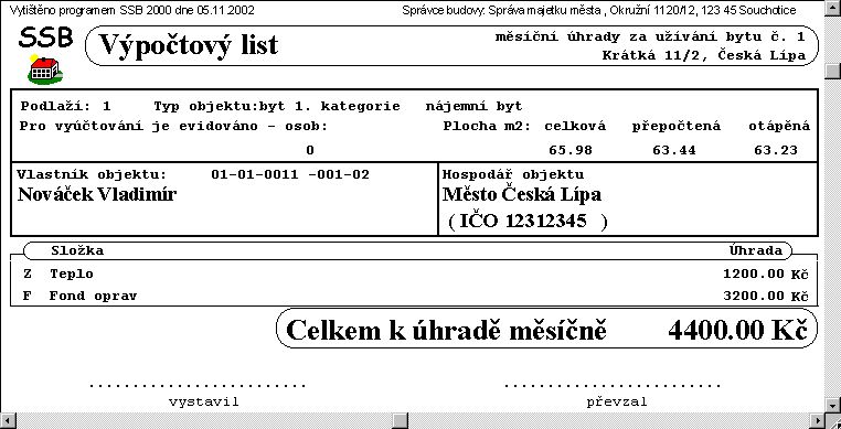 - Přidána sestava o Převodu bytu do vlastnictví.