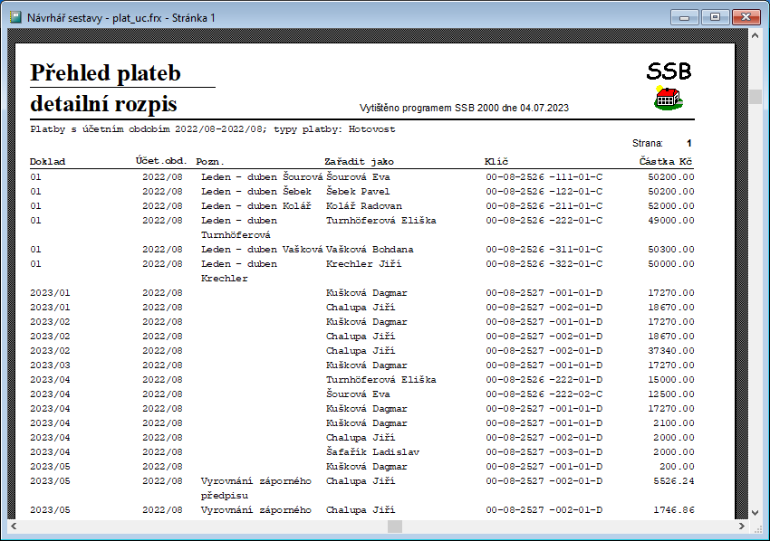 - Sestavu Nájemci - Přehled předpisů a jejich uhrazení - kontovztahy - lze vytisknout včetně detailního rozpisu složek předpisu.