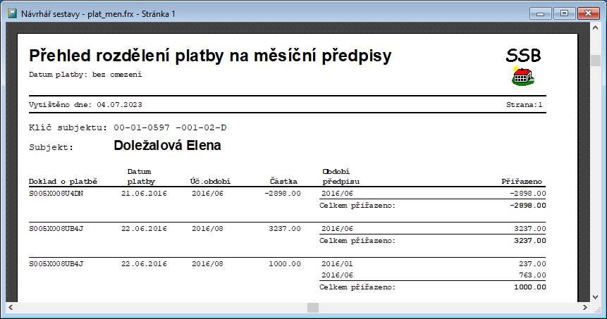 - Vývoj plateb nečleněný s výpisem penále lze omezit také na pohyby s datem do.