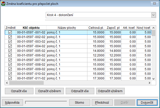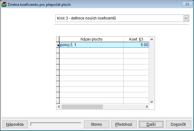 - v evidenci ploch místností je podpora výpočtu koeficientů v závislosti na počtu otápěných stěn