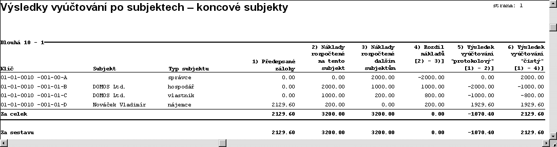 - Souhrnná statistika po celcích a složkách z vyúčtování sumarizuje přeplatky a nedoplatky také nezaokrouhleně.