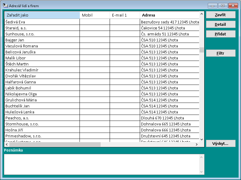 Voláno z menu: Běžné akce ⇒ Adresář lidí a firem