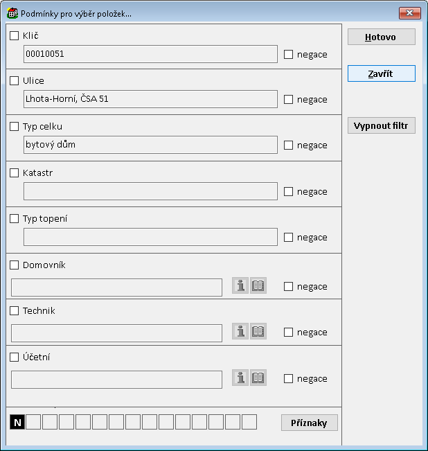 - Údaje V domě je výtah a Dům je ústředně vytápěn používají se při pořízení nového objektu v celku.