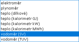 - Předvolba Všechny druhy měřidel - není-li zapnuta, lze v pevně definované rozbalovací nabídce vybrat typ měřidel, která mají být zobrazena. Vypnutím předvolby bude tato nabídka znepřístupněna a budou zobrazena měřidla všech typů.