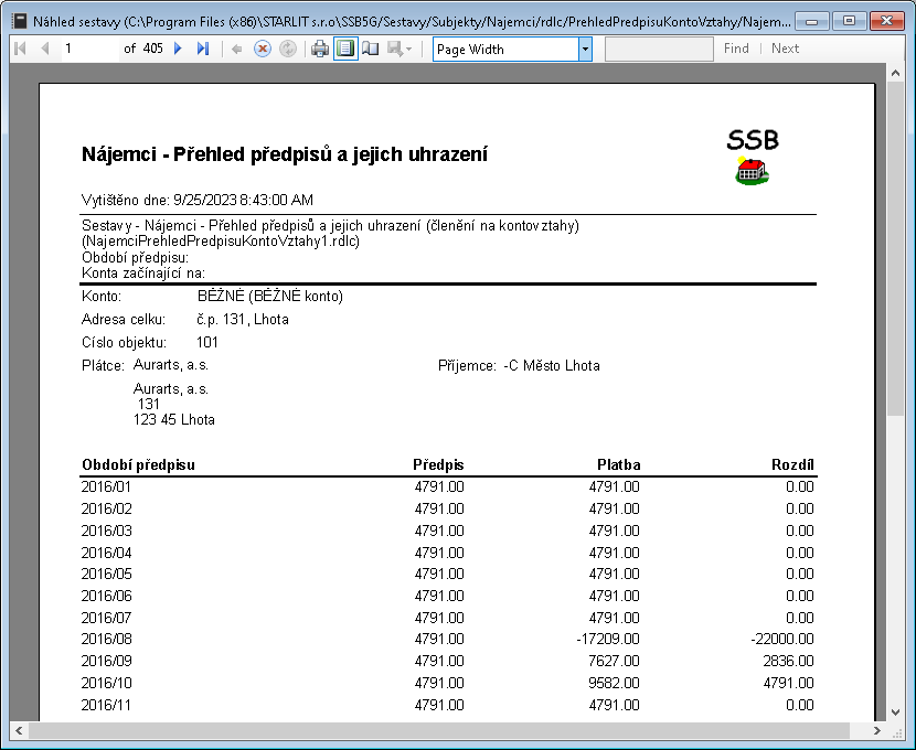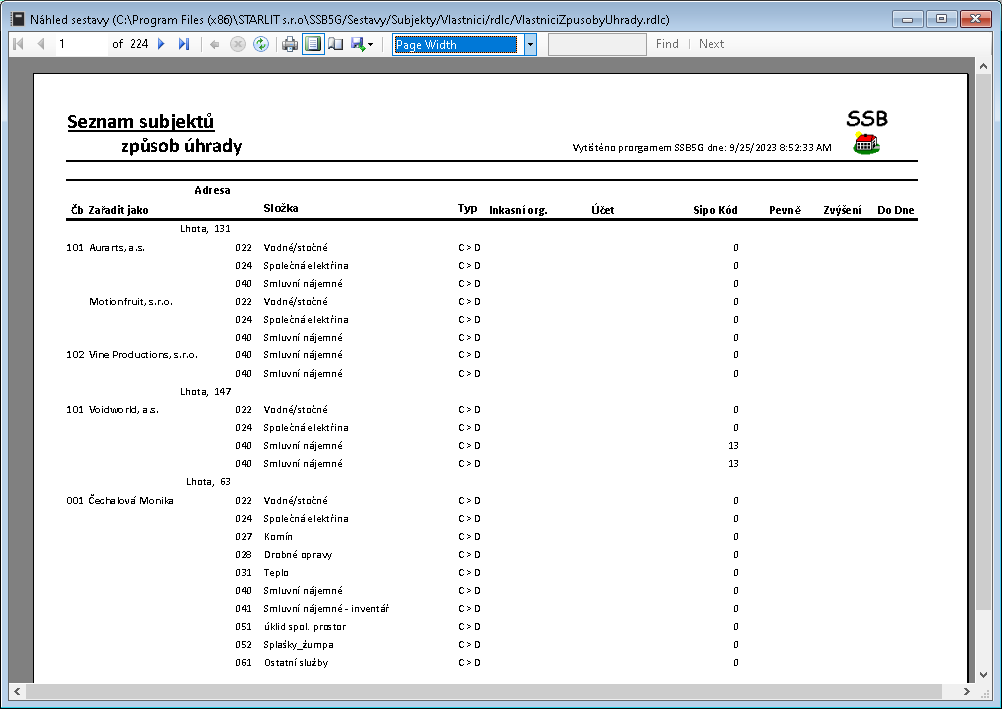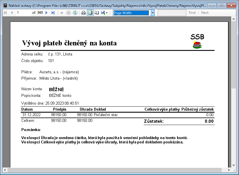 Úloha tiskne vývoj plateb (účet) subjektu bez ohledu na konta.