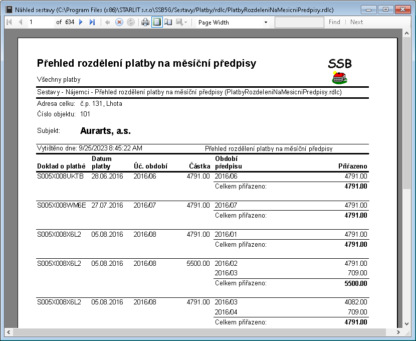 Úloha tiskne pro jednotlivé platby jejich přiřazení k jednotlivým předpisům (jak byla platba použita k úhradě předpisů v jednotlivých měsících)