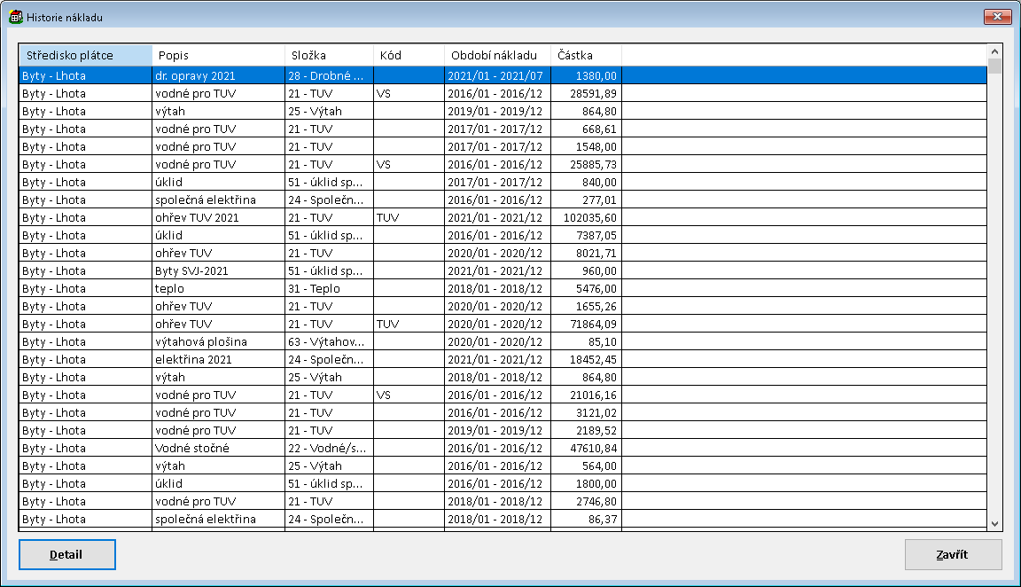 - Tlačítko Detail - spouští příslušný formulář dle typu nákladové položky. Je to Formulář Položka faktury - rozúčtovat proti zálohám na služby,