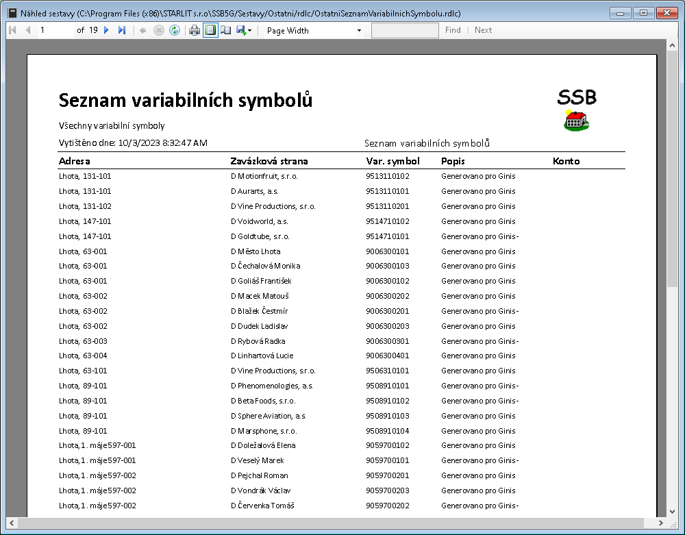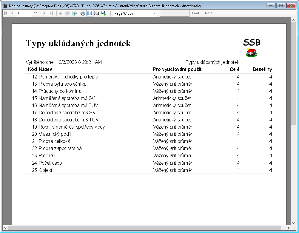 Úloha tiskne prostý seznam ukládaných jednotek, definovaných v úloze Ukládané jednotky.