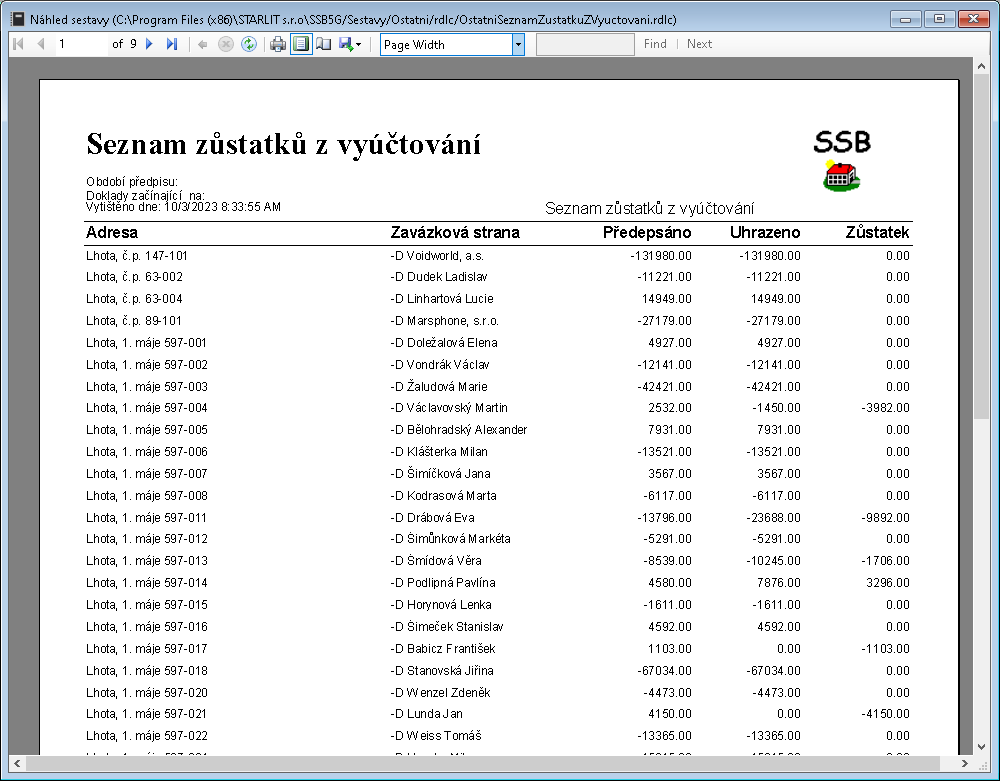 Voláno z menu: Sestavy ⇒ Ostatní ⇒ Kontrola nastavení předepsání složek