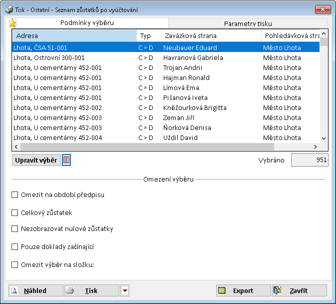 Obrázek: Formulář Tisk ( Kontrola nastavení předepsání složek )