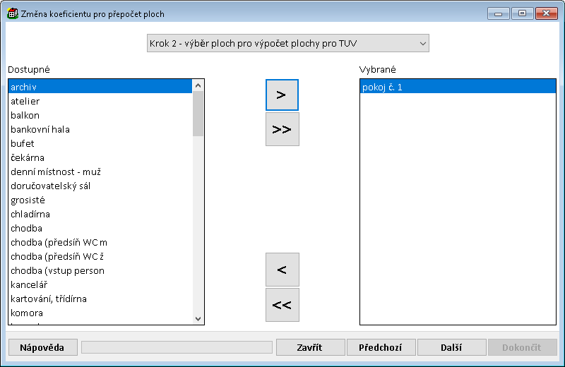 - Obrázek: Průvodce Výpočet plochy pro TUV (Krok 1 - výběr objektů)